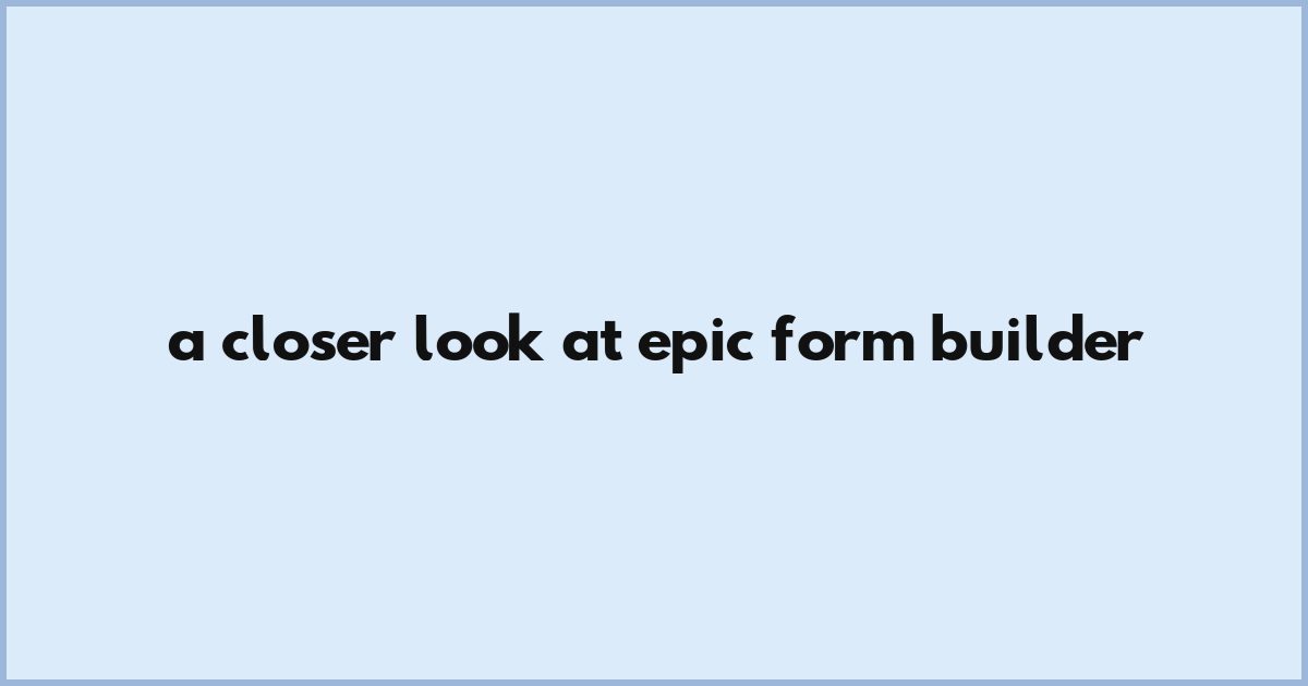 A Closer Look At Epic: Form Builder