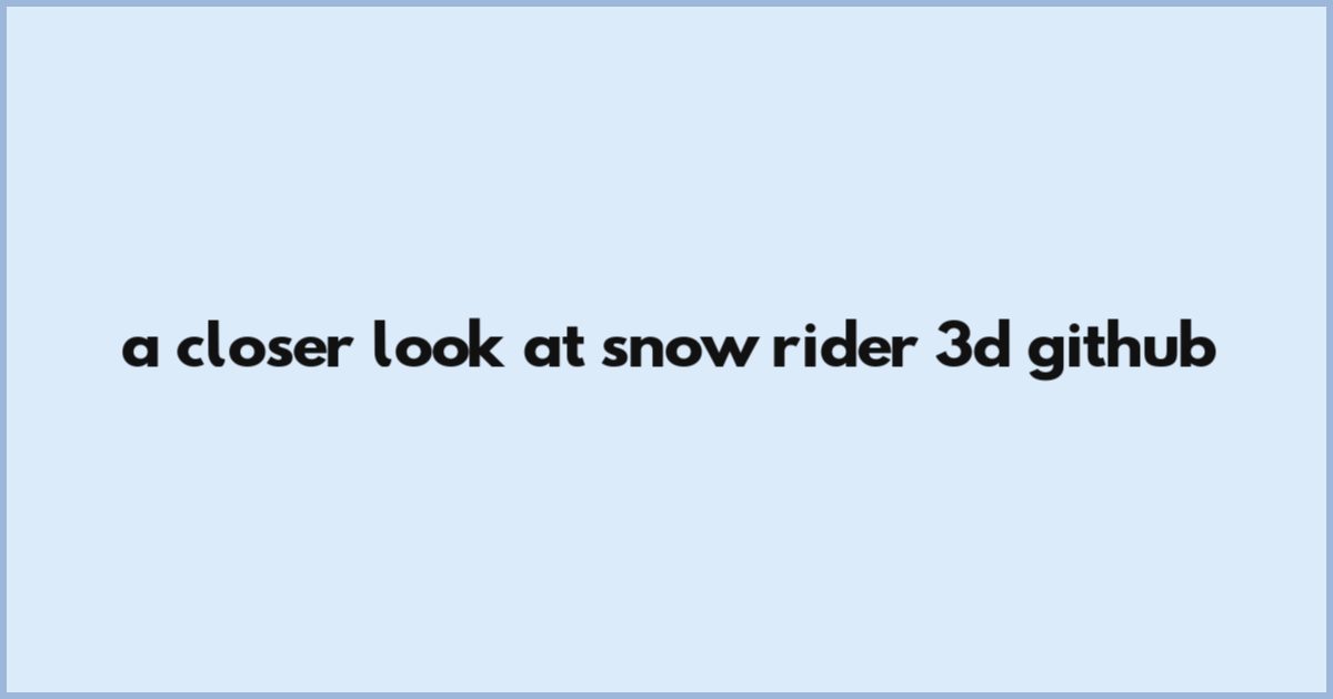 A Closer Look At Snow Rider 3d Github