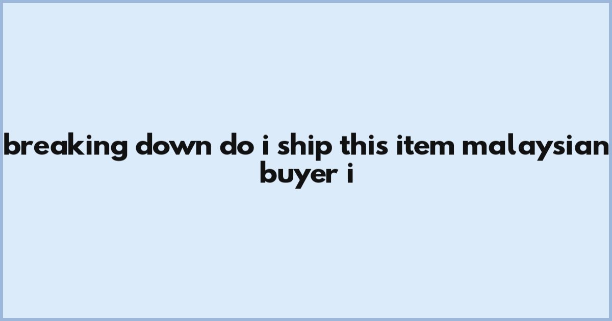 Breaking Down Do I Ship This Item? Malaysian Buyer I