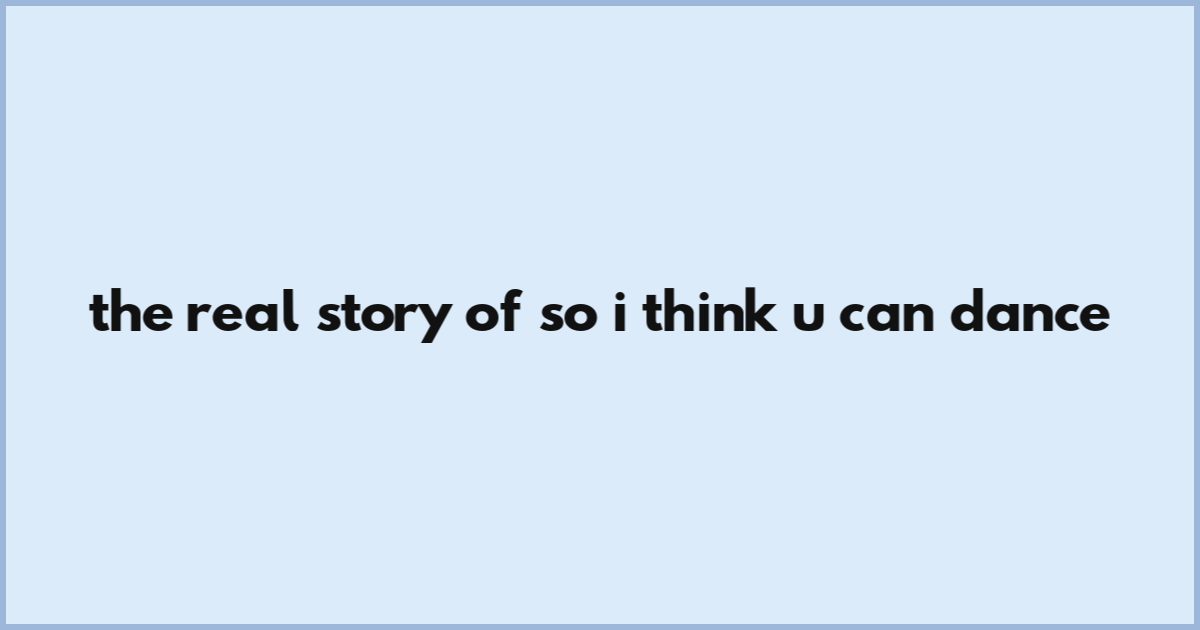 The Real Story Of So I Think U Can Dance
