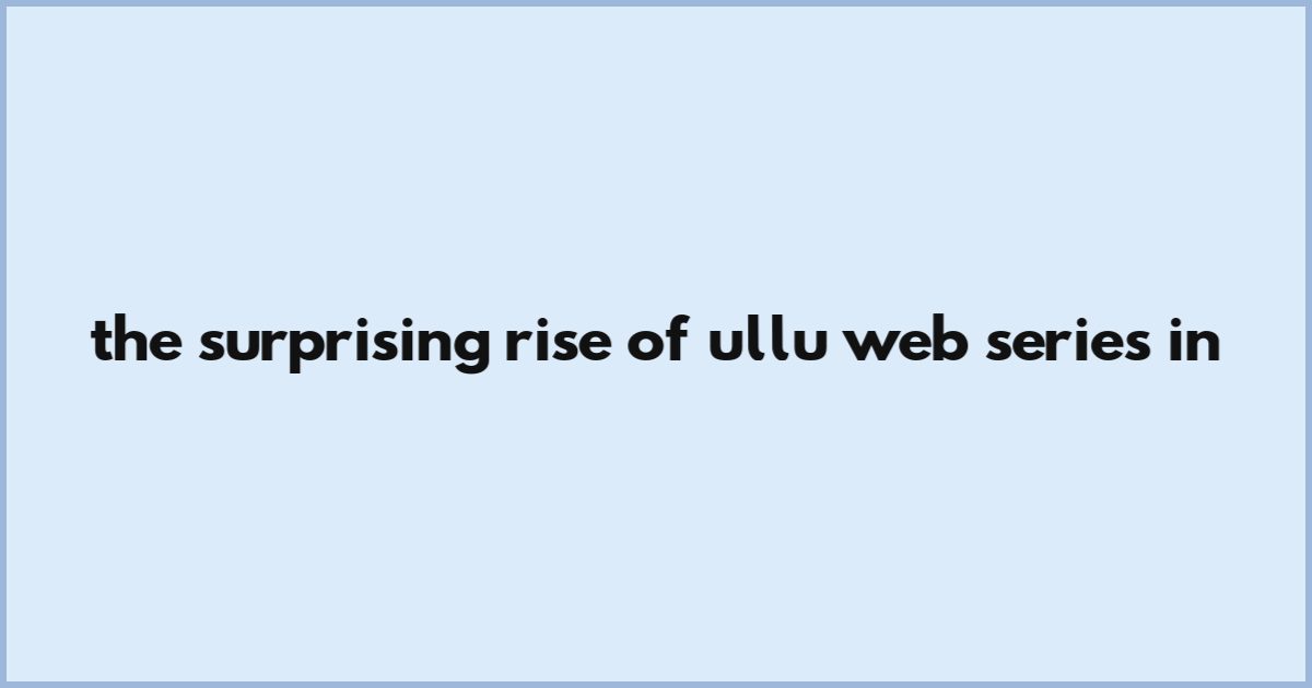 The Surprising Rise Of Ullu Web Series In
